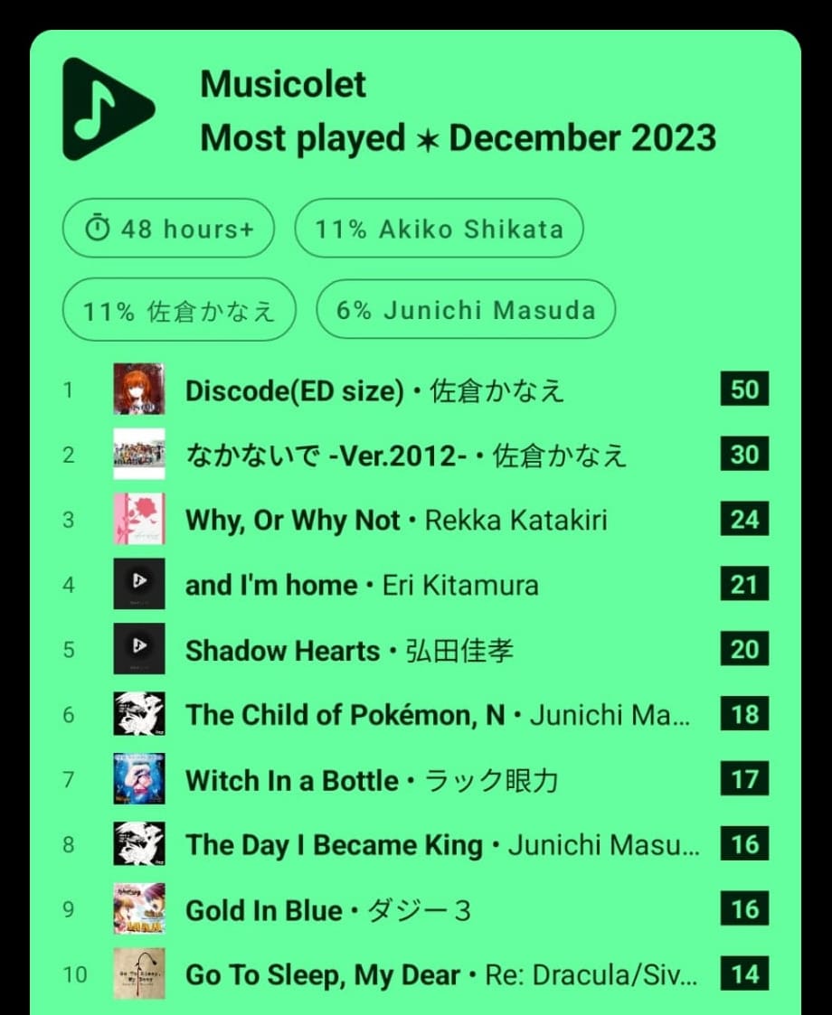 December was largely about hauling ass to finish Umineko episode 4. In case I hadn't made it clear, I had played most of the Umineko series before it was officially licensed, back when it was a fan translation. I have beaten Episode 4 at least twice years ago. But regardless, Episode 4 still emotionally destroys me. When I cleared all of it yesterday (December 30th) I was devastated and just listened to Discode on repeat.